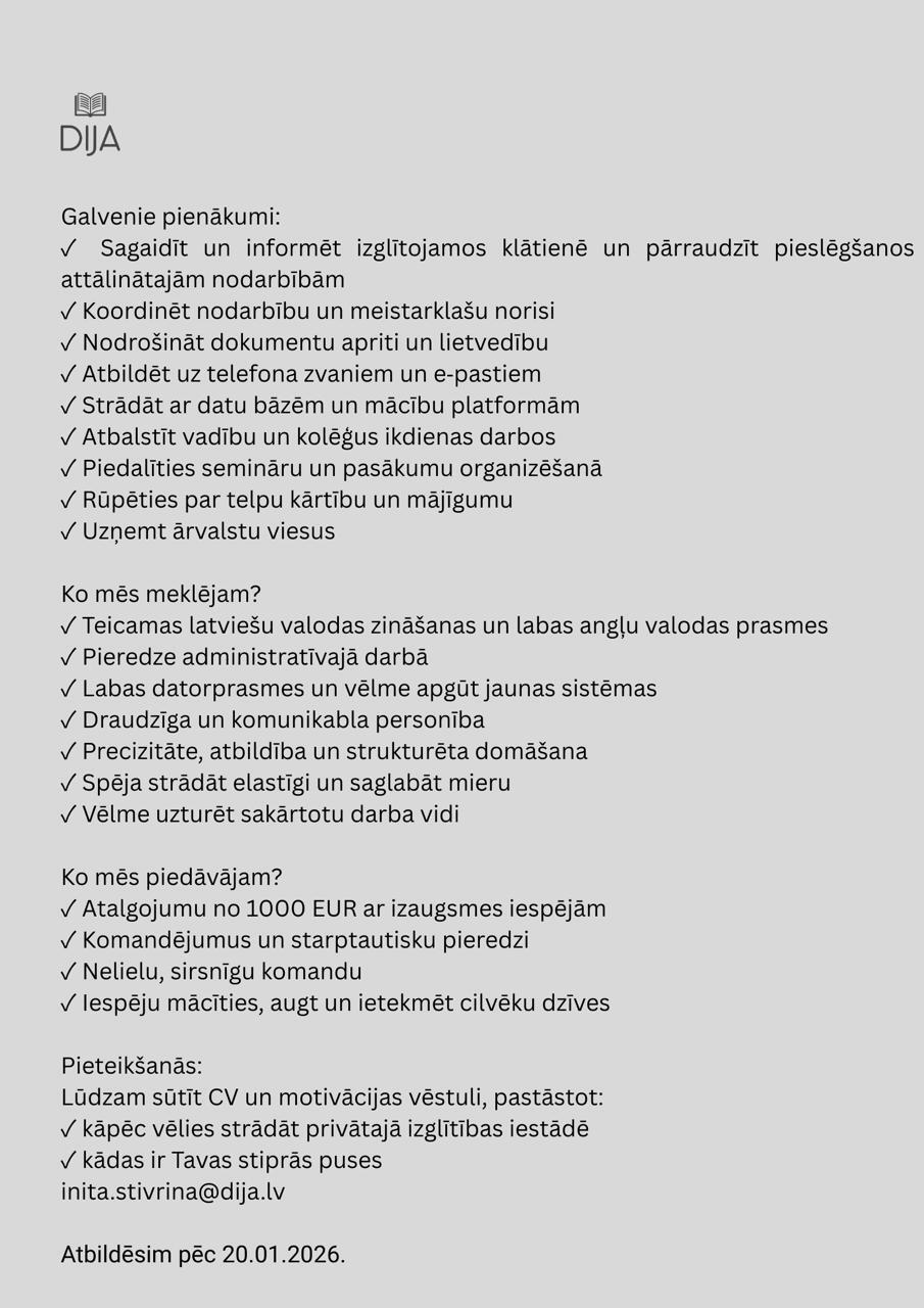 Vai Tev ir talants radīt mājīgu atmosfēru un likt cilvēkiem justies gaidītiem jau no pirmās sarunas? Vai Tev patīk vide, kur kolēģi ir plecu pie pleca, nevis anonīma lielas organizācijas sistēma? Ja atbildi ar "jā", iespējams, tieši Tu esi cilvēks, kuru meklējam savā komandā.